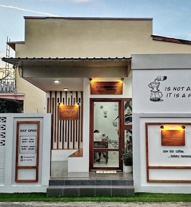 สไตล์: ตัวอักษรเรียบง่าย ใช้ฟอนต์แบบ Sans-serif หรือ Serif บางๆ มีโลโก้ร้านเล็ก ๆ หรือไอคอนที่บ่งบอกความเป็นคาเฟ่ เช่น ถ้วยกาแฟ เมล็ดกาแฟ